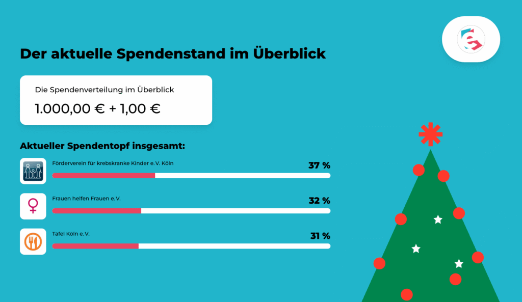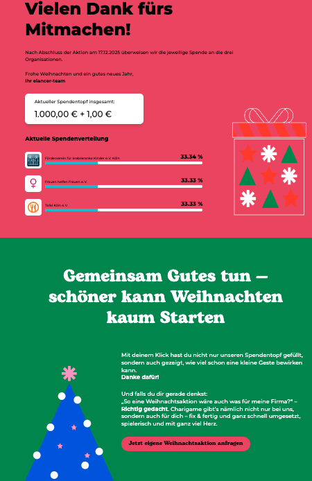 Nach der Spendenvergabe landet der Kunde auf einer Dankes-Seite mit aktueller Übersicht des Spendentopfes